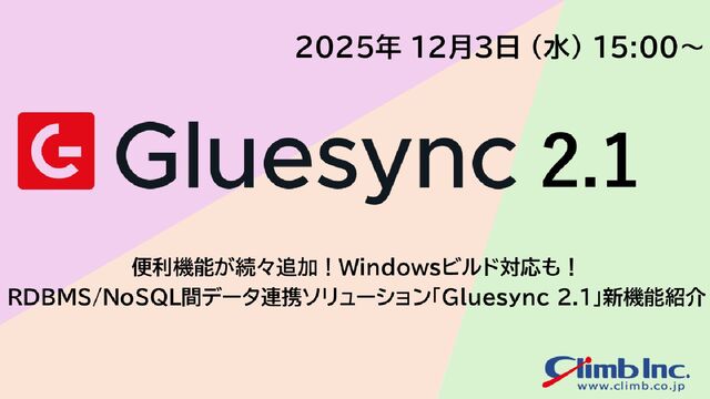本セミナーでは2.1における新機能に加えて、Gluesyncの基本的な特徴やアーキテクチャもデモを交えてご紹介します。