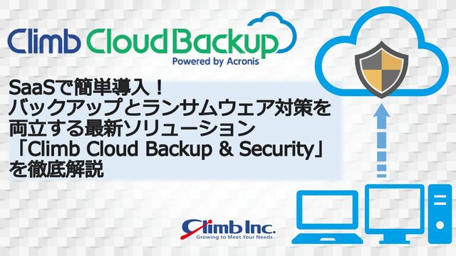 そんな方に向けて、本セミナーではClimb Cloud Backup & Security powered by Acronis をご紹介します。