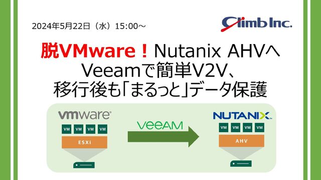 本セミナーではNutanix AHVに焦点を当て、Nutanix AHV仮想マシンのバックアップ、構成についてや、VMwareからNutanix AHVへの移行について紹介します。