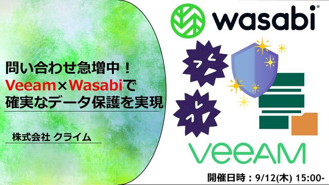 物理・仮想・クラウド環境のデータ保護をサポートしているバックアップソフトVeeamと、クラウドオブジェクトストレージWasabiの連携について、構成例などを中心にご紹介します。