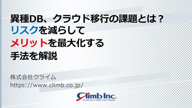 本セッションでは、データベース移行方法の種類や、注意点などについてまとめてご紹介します。