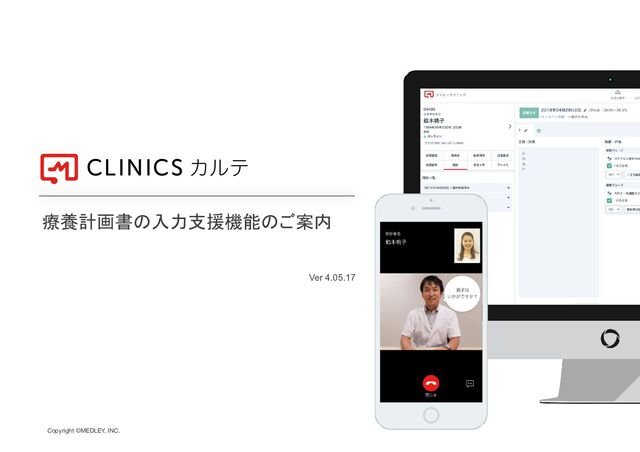 東京都港区六本木6-10-1 六本木ヒルズ森タワー13F 設立日 2009年6月5日 上場日 2019年12月12日 代表者 代表取締役社長 瀧口 浩平 事業内容 医療ヘルスケア領域のシステムの開発・販売等 従業員数 約1,105名(2024年3月)※連結従業員数 ▍政府・臨床現場との連携 2017年 東日本大震災の被災地でのオンライン診療支援 2018年 厚生労働省事業「遠隔医療従事者研修」受託 2019年 厚生労働省事業「電子処方箋の本格運用に向けた 実証事業一式」受託 2021年 新型コロナ自宅療養者向けオンライン診療システム の無償提供 医療介護求人サイト 医科診療所向け電子カルテ 医科診療所向けオンライン診療システム 医科診療所向け予約システム 患者向けオンライン診療・服薬指 導アプリ かかりつけ薬局支援システム クラウド歯科業務システム 病院向け電子カルテ 地域医療連携システム(医療・介護・在宅) オンライン動画研修システム 介護施設の検索サイト オンライン医療事典 会社概要