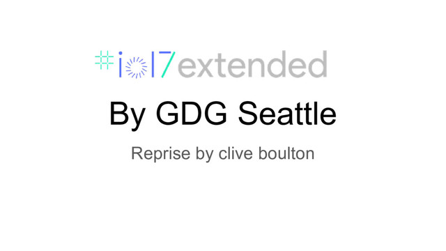 NA Organizers Summit (220 from America + Canada) • 5/16 - GDG Global Organizers Summit (550 for 97 countries) • 5/17 - Google IO / Google Extended IO • 5/18 - Google IO day 2 • 5/19 - Google IO day 3 • 5/30 - Extended IO GDG Seattle