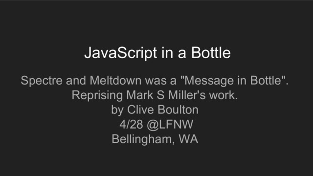 Spectre and Meltdown was a "Message in Bottle". We present how JavaScript can defend itself from speculative execution class security hacks by reprising Mark S Miller's work.