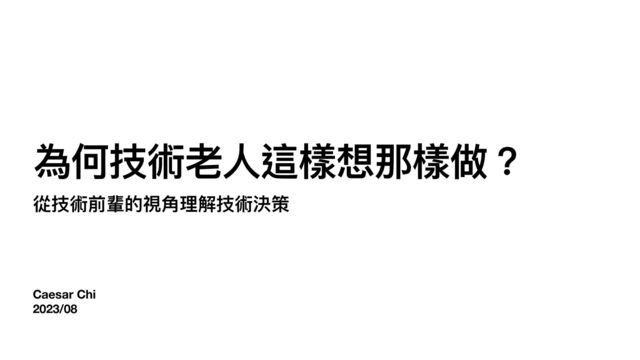 從技術前輩的視角理解技術決策,從技術前輩的視角理解技術決策,技術世界的不斷變化,工程師的智慧決策之道,理解工程師心路歷程通道,從技術架構到技術選題的考量,邁向真正的資深工程師。