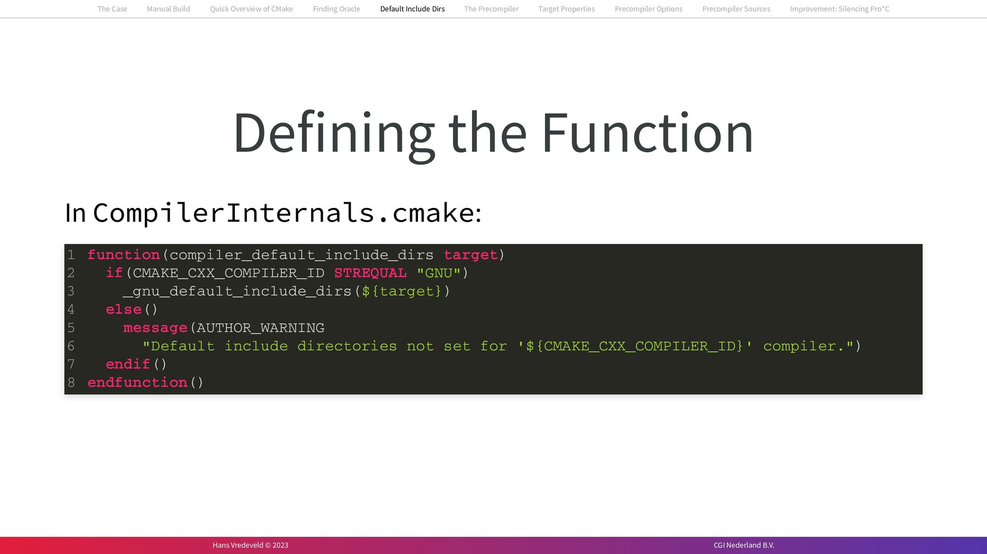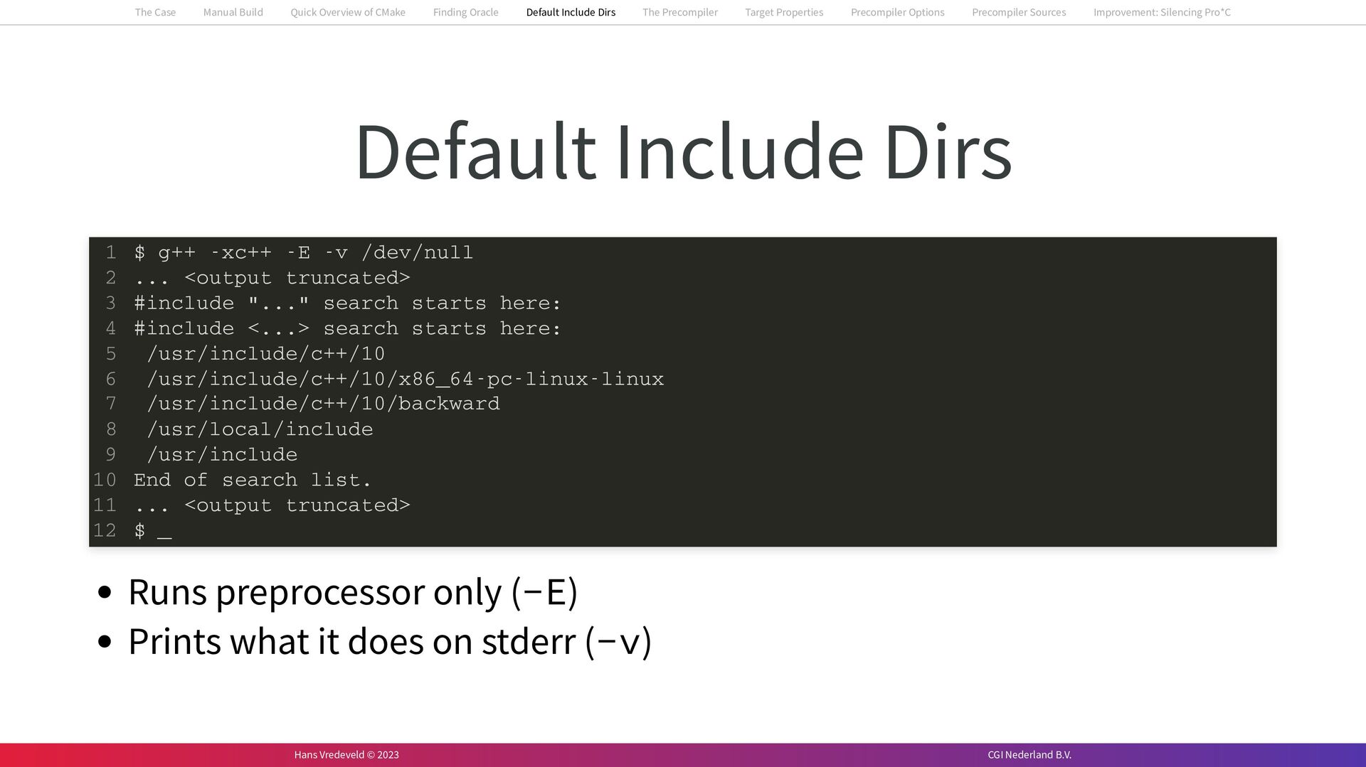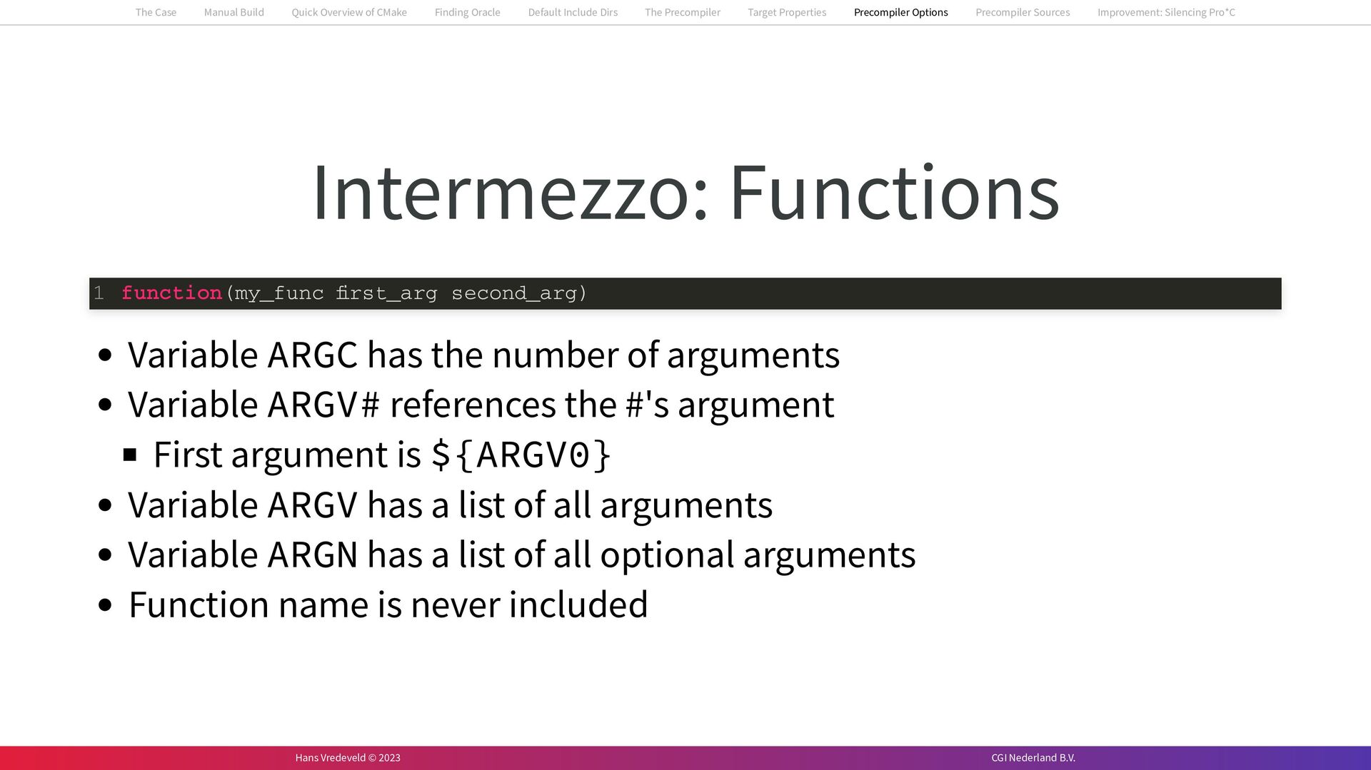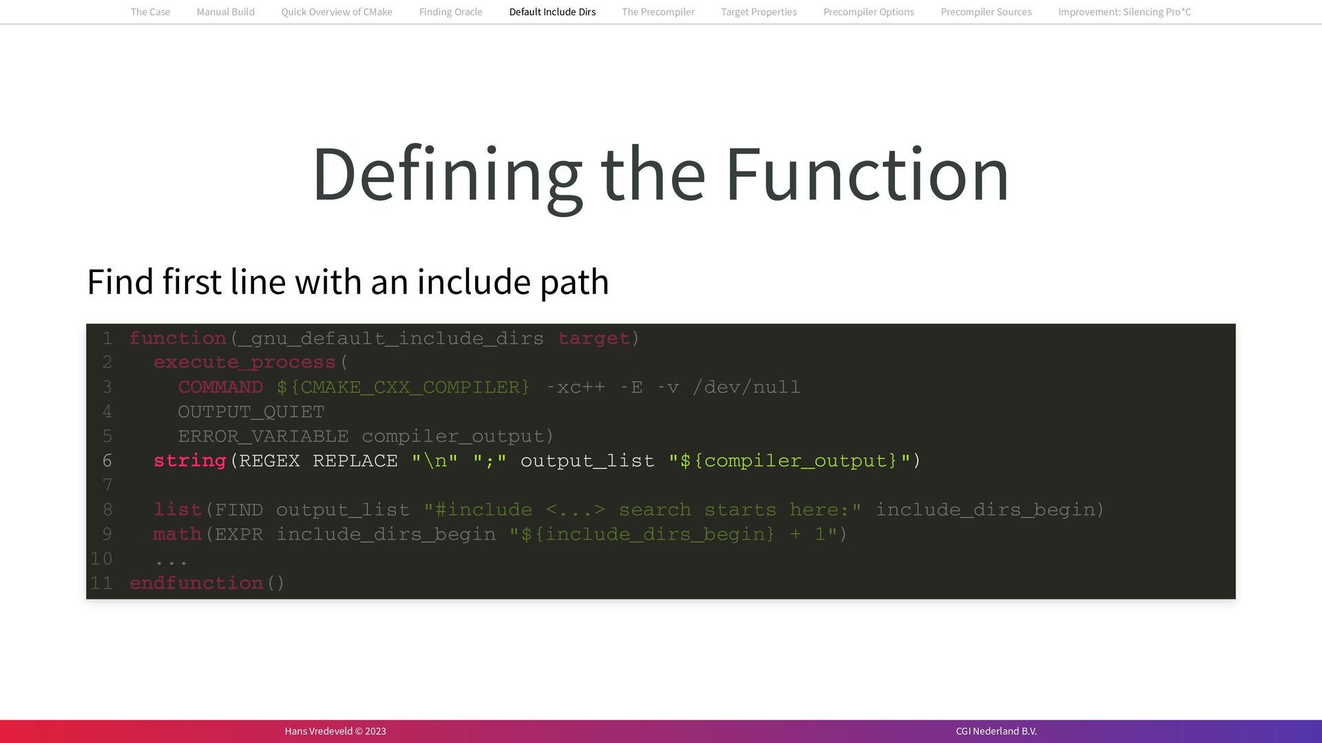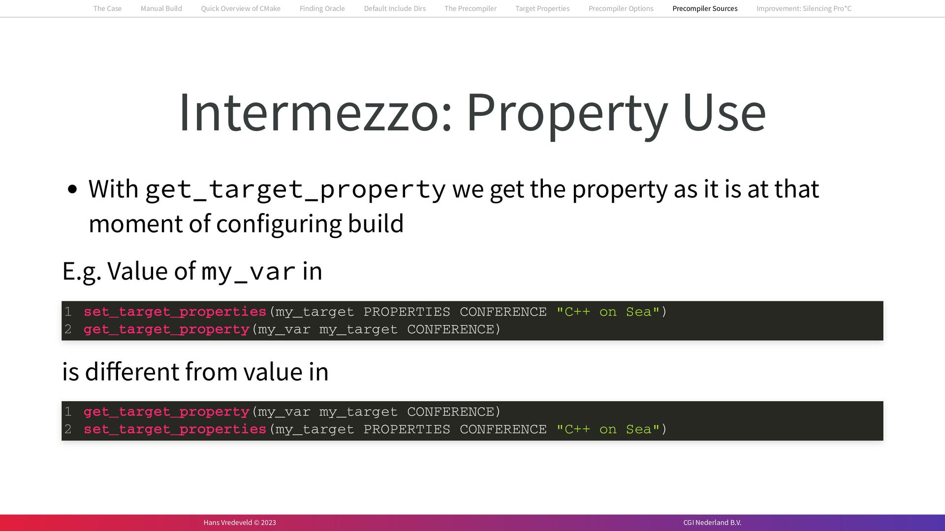 In the case study, we will look at a C++-application that uses embedded SQL to talk to an Oracle SQL-database. To build the application, it needs to link against Oracle’s client library, and the files with embedded SQL need to be converted to pure C++ before they can be compiled. How can we find that library when there is no CMake module for it yet? (We write our own!) How can we execute Oracle’s preprocessor to convert files with embedded SQL in a structured way when there are tens, or hundreds, of those files, possibly spread over different CMake targets? Come to my talk and I will tell you.