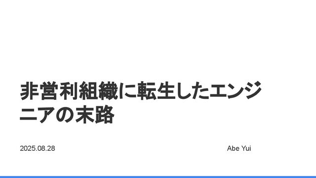 非営利組織に転生したエンジ ニアの末路 2025.08.28 Abe Yui