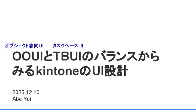 OOUIとTBUIのバランスから みるkintoneのUI設計 2025.12.10 Abe Yui オブジェクト志向UI タスクベースUI