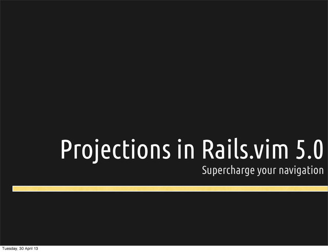 ‣Your ~/.vimrc !le and only if the gem is present in the Gemfile. ‣From any lib/rails/projections.json included in a gem present in the Gemfile. Tuesday, 30 April 13