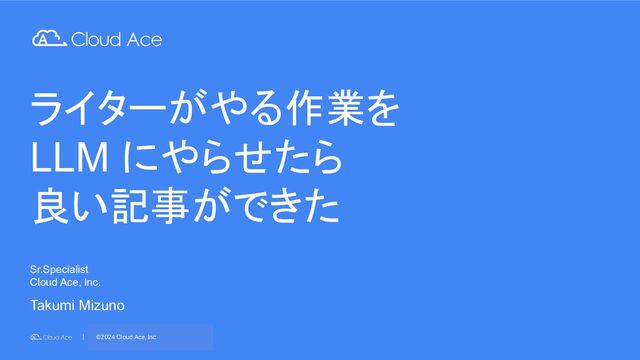 Mizuno Sr.Specialist Cloud Ace, lnc. ©2024 Cloud Ace, Inc