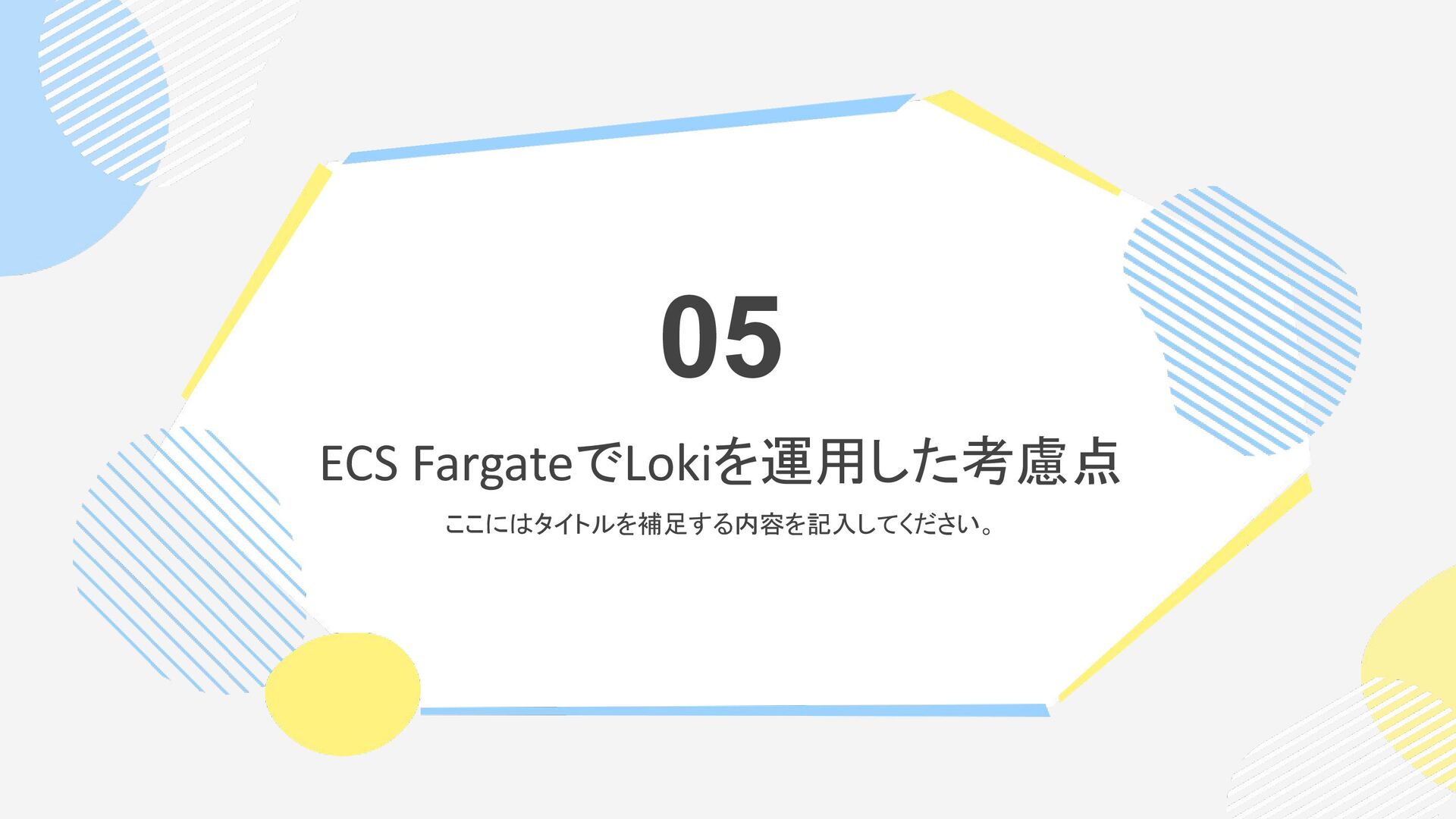 ECS FargateでLokiを運用した考慮点 ここにはタイトルを補足する内容を記入してください。 05