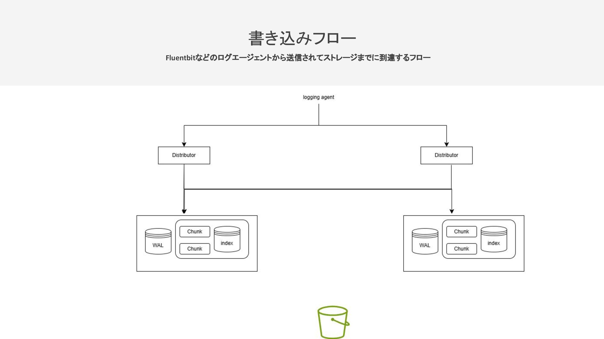 書き込みフロー Fluentbitなどのログエージェントから送信されてストレージまでに到達するフロー