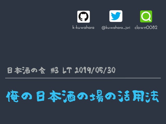 Զͷຊञͷͷ׆༻๏ 日本酒の会 #3 LT 2019/05/30 k-kuwahara @kuwahara_jsri clown0082