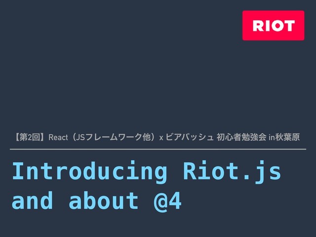 ɾriot-view-router ɾriot-routehandler ɾriotgear-router ɾredux-riot-router State management ɾRiotControl ɾriotify ɾriotx ɾobseriot Compile ɾgulp-riot ɾriot-tag-loader ɾriotjs-loader ɾriotify ɾrollup-plugin-riot Designs, Animations ɾriot-mui ɾnest-ui ɾriot-bootstrap ɾriot-fontawesome ɾsemantic-ui-riot ɾriot-animate ɾriot-flipcard ɾbabel-preset-es2015-riot ɾriot-placeholder ɾkarma-riot ɾriot-hot-reload ɾeslint-config-riot Others
