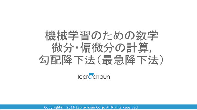 Copyright© 2016 Leprachaun Corp. All Rights Reserved 勾配降下法(最急降下法)