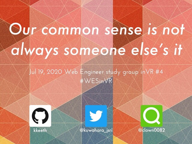 sense for a web engineer! M-san, I have a question. Ah, … Do you know? man Senior What's the common sense and the taking for granted for web engineers in the first place?