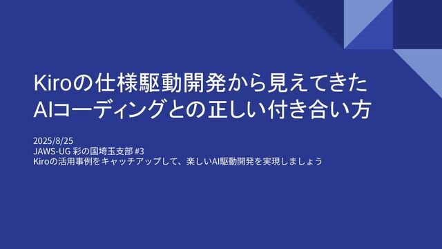 2025年8月25日 JAWS-UG彩の国埼玉支部 LT会 アーカイブ動画はこちら↓ https://youtu.be/6_nWs_JeDOQ?list=PLYMeJaIBczfoZk-wql2kI_rXenBWC_a_N&t=1928
