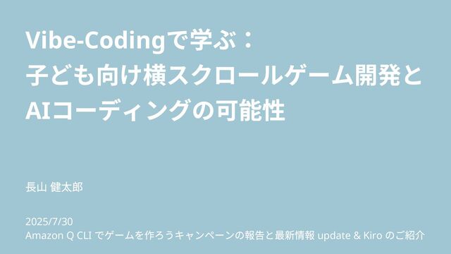 Vibe-Coding で学ぶ: 子ども向け横スクロールゲーム開発と AI コーディングの可能性 長山 健太郎 2025/7/30 Amazon Q