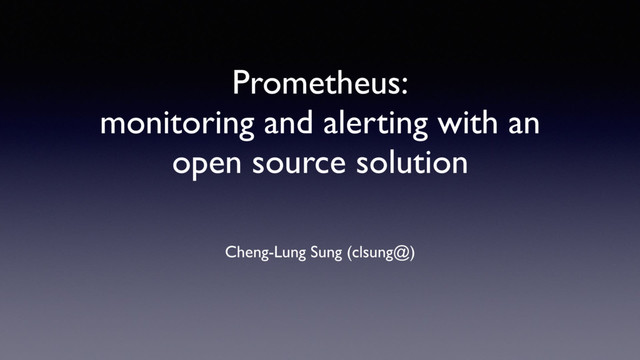 monitoring • Time series DB • Component introduction • Why choose Prometheus against alternatives. • How we adopt Prometheus (code examples in Go) • What metrics to measure? • Why 50%, 90%, 99%? • Not only Prometheus • Other open source solutions for DevOps to save the day.