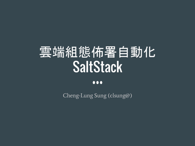 This talk will cover SaltStack concepts including execution modules, functions, and configuration management, e.g., states and formulas. In addition to demonstrating a simple cloud service (instances of REST API, cache, database, and service discovery), the speaker will also discuss state-of-the-art cloud service practices.