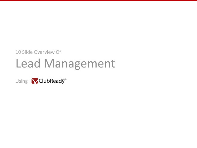 understand the return vs. cost from multiple lead sources • Capture - leads in club (self service) • Don’t Waste - never lose a lead - even years later • Automation - make things happen automatically at the right time • Automation - multiple touches – Calls / Emails / SMS / Mobile Push / Postal Mail • Automation - present staff with “who to call each day” • Efficiency - ensure staff can work efficiently on an intuitive system • Efficiency – Add-hoc blasts – Email / SMS / Mobile • Schedule - presentations • Automation - remind and track no-shows • Standardize - staff presentation flows • Convert - provide additional conversion paths at the right time (online signup) • Measure - everything that can drive improvement in people & process • Measure - assess when closer is not seller (free class based presentations) • Measure - do this across many locations – with slice & dice capability • Make everything above 100% customizable