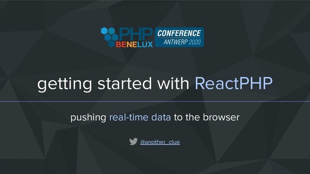These slides were used as part of a presentation at @phpbenelux. The full presentation took 60min with basic project setup, getting started with ReactPHP's core components and eventually implementing an HTTP server using Server-Sent Events (EventSource).