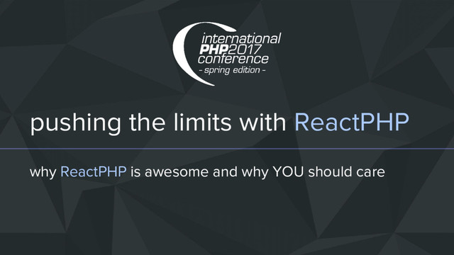 It’s 2017 and times have changed – yet PHP is still most often associated with your average product catalogue or blogging platform. In this talk you will learn that PHP’s huge ecosystem has way more to offer and PHP is not inferior at all to its evil cousin Node.js. You will learn about the core concepts of async PHP and why you too should care about ReactPHP being a real thing. The talk has a strong focus on sparking the idea that PHP can be way faster and more versatile than you probably thought. Bring along an open mind and through lots of examples and demos learn why what sounds crazy at first might soon be a valuable addition in your toolbox.