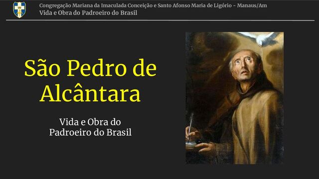 Ligório - Manaus/Am Vida e Obra do Padroeiro do Brasil 17 Vejamos o que diz parte do documento oficial a respeito: “Desde que Sua Majestade Real e Imperial recebeu, sob o nome de Pedro I e sob o título de Imperador e Defensor perpétuo do Brasil, a missão de governar e dirigir esse povo quase inumerável, esteve convencido do profundo espírito de piedade e de religião, que brilha igualmente nos demais membros da Família Imperial e se persuadiu de que não poderia reger e administrar os negócios desta Nação, sem que antes se interessasse em ter um Padroeiro celestial que, por sua intercessão junto de Deus, lhe assegurasse os meios de bem agir e de bem dirigir e de bem administrar. Não foi necessário longa reflexão. Já pela devoção especial que ele tinha por São Pedro de Alcântara, da família dos Franciscanos, que foi um prodígio de penitência e de austeridade, já por trazer, como imperador, o próprio nome do santo, ele decidiu escolhê-lo como padroeiro principal de todo o império”. Bispo JÚLIO MARIA - 31 de maio de 1826