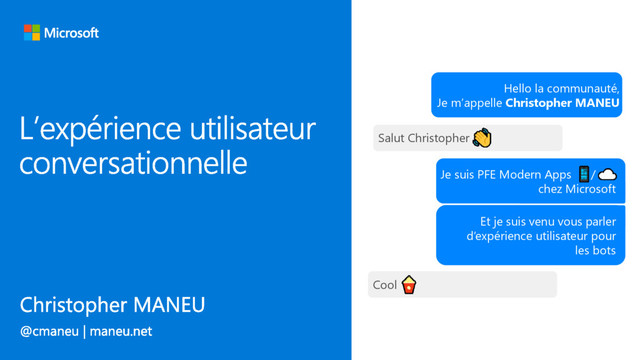 l’information avant de la demander • Demander, en proposant des hints • Demander et afficher des choix • Confirmer avant d’exécuter une opération sensible • Expliquer lorsque le bot ne comprend pas (purple, sorry) • Monitorer, pour améliorer : Extra large, Extra-large, XL, 5 ScubaBot Ecrire un message… Quelle taille de tshirt souhaitez vous ? Medium, Large, … XL C’est un taille cela ? Je ne la comprends peut-être pas encore... Voici celles que nous avons: Small 1. Medium 2. Large 3. Extra 4. -Large