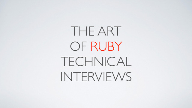 So, you want to be a Ruby developer? You've attended a bootcamp, read the books, and completed online courses. You're ready to start building great things. But the technical interview process can be a challenge for new Ruby developers. I'll teach you how to prepare, practice and give you techniques to answer tough questions.