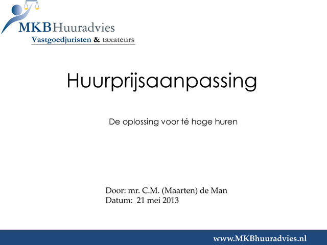 Mogelijk middels een (bindend) huurprijsadvies. Geen medewerking? Benoeming deskundige door een rechter. Huurprijs herziening Winkels & horeca www.MKBhuuradvies.nl