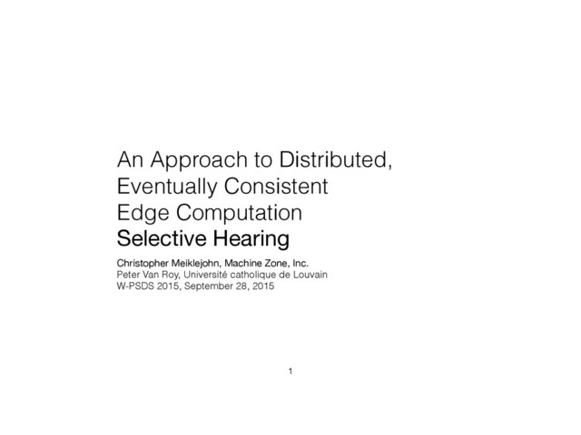 in the graph to represent objects that have their own replication scheme • Each node in the dataflow graph: • Replicated state machine • Dynamo-style “quorum-intersection” • Single value • Epidemic broadcast for data propagation Facilitates distribution of “program state” across nodes in the dataflow graph 39