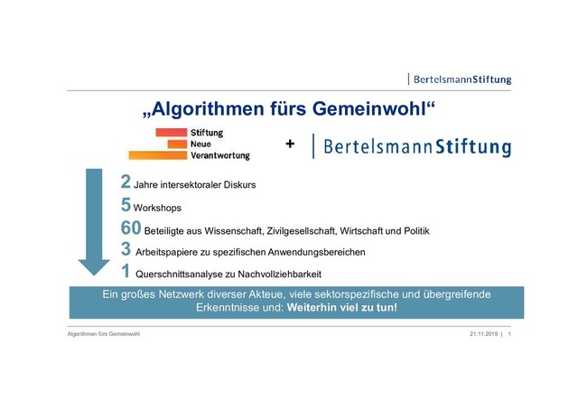 intersektoraler Diskurs Ein großes Netzwerk diverser Akteue, viele sektorspezifische und übergreifende Erkenntnisse und: Weiterhin viel zu tun! 5Workshops 3 Arbeitspapiere zu spezifischen Anwendungsbereichen 1 Querschnittsanalyse zu Nachvollziehbarkeit + 60Beteiligte aus Wissenschaft, Zivilgesellschaft, Wirtschaft und Politik