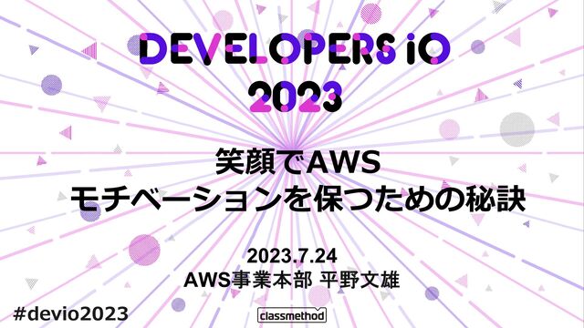 笑顔でAWS モチベーションを保つための秘訣 2023.7.24 AWS事業本部 平野文雄 #devio2023