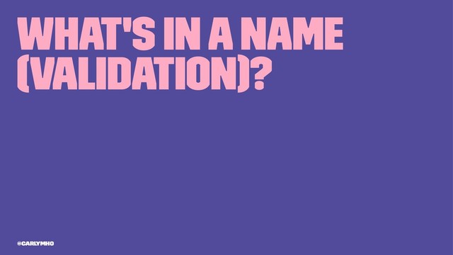 Valid names: Steve Smith, Lisa Baumgarden, Jennifer Miller. Invalid Names: Carly Ho, Kaspars Bērziņš, Dharmavarapu Subramanyam, Manuel Pellegrini Ripamonti? In this talk, I will share my experience as a person with a name uncommon in dominant American culture, discuss how I've had to deal with forms that think my name is invalid, and how we can collect and handle data in inclusive ways.