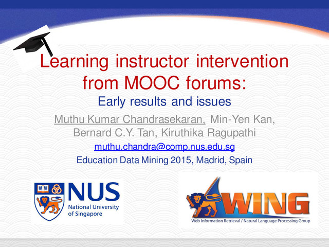 I presented this work at International Conference on Education Data Mining, 2015 at Madrid, Spain. #WING-NUS #EDM