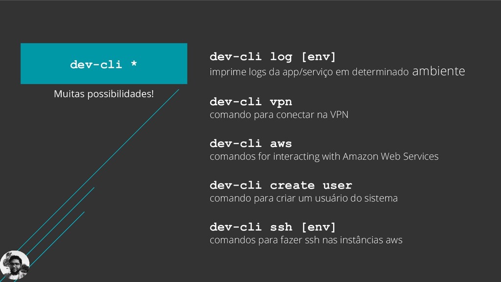 Composta por diversos scripts, a dev-cli é uma interface de comando no terminal que visa facilitar a vida e dar um boost na produtividade das pessoas desenvolvedoras. Essa técnica não é nova, no entanto, poucas pessoas desenvolvedoras conhecem e desfrutam de seus benefícios.