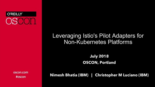 on Kubernetes § Istio Pilot can run standalone outside Kubernetes § Pilot supports • integration with VMs • Service discovery systems like Consul and Eureka Pilot Platform Adapter Abstract Model Envoy APIs Envoy Proxy Envoy Proxy Envoy Proxy