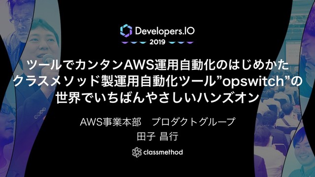 2019年11月1日に開催されたDevelopers.IO 2019 Tokyoで実施した、クラスメソッド製AWS運用自動化サービス「opswitch」のハンズオン資料です。