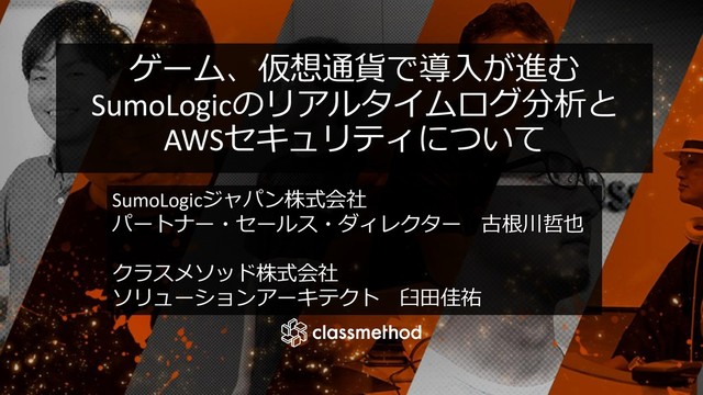 Developers.IO 2018「ゲーム、仮想通貨で導入が進むSumoLogicのリアルタイムログ分析とAWSセキュリティについて」の登壇資料です。 弊社及びSumoLogic様プレゼン内容をマージしています。