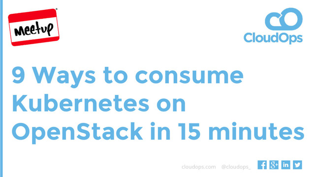 OpenStack & K8s Engineer and developer at CloudOps • Started to use OpenStack from Grizzly • Organizer of K8s and Openstack meetups in Canada • [email protected]