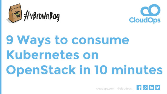NOT consuming OpenStack but we have to start with the first place a developer is exposed to Kubernetes. Usually it’s their laptop but could also be a single instance with a Cloud Provider. Currently both solutions don’t offer a Cloud Provider support. KubeADM (Ubuntu 16.04 or CentOS 7) Bootstrap a K8s cluster in 2 commands. The installation uses a tool called kubeadm which is part of Kubernetes 1.4. This process works with local VMs, physical servers and/or cloud servers. It is simple enough that you can easily integrate its use into your own automation (Terraform, Chef, Puppet, etc). The kubeadm tool is currently in alpha MiniKube (Linux / OSX) Minikube starts a single node kubernetes cluster locally for purposes of development and testing. Minikube packages and configures a Linux VM, Docker and all Kubernetes components, optimized for local development. Minikube supports Kubernetes features such as DNS, NodePorts, ConfigMaps and Secrets, Dashboards. Minikube does not yet support Cloud Provider specific features such as LoadBalancers, PersistentVolumes, Ingress