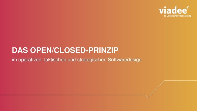 Meist wird dieses Prinzip nur im Kontext der konkreten Umsetzung im Code berücksichtigt. In diesem Vortrag wollen wir die Perspektive erweitern und es auch im taktischen und strategisch Design anwenden. Anhand von konkreten Code-Beispielen wird das Open/Closed Prinzip vorgestellt und dessen Anwendung in den verschiedenen Design-Ebenen erklärt.