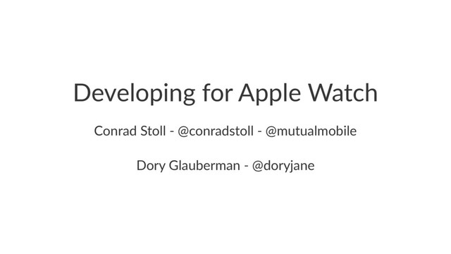 Developing for Apple Watch Conrad Stoll - @conradstoll - @mutualmobile