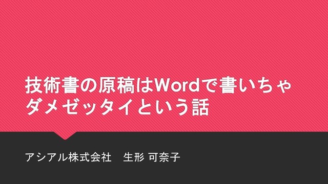 技術書の原稿はWordで書いちゃ ダメゼッタイという話 アシアル株式会社 生形 可奈子
