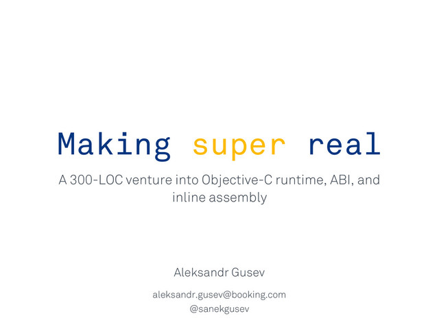• Receives selector and all other arguments • Should get objc_super from self • Should call objc_msgSendSuper() or objc_msgSendSuper_stret() • Should pass all other arguments verbatim • Should return result
