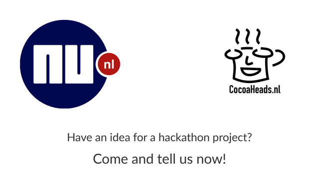 CocoaHeads.nl Have%an%idea%for%a%hackathon%project? Come%and%tell%us%now!