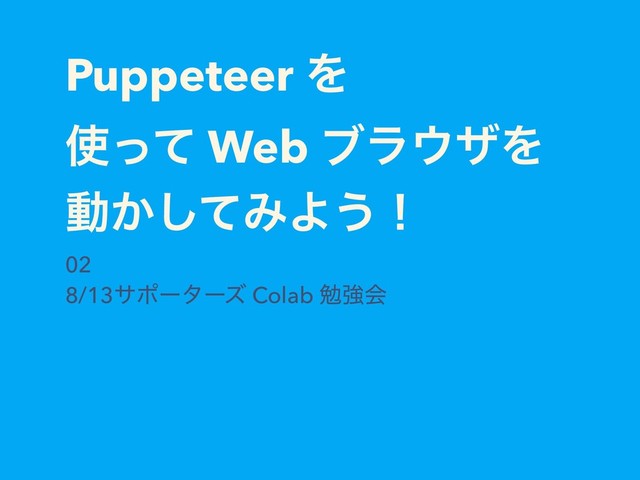Puppeteer Λ ͬͯ Web ϒϥβΛ ಈ͔ͯ͠ΈΑ͏ʂ 02 8/13αϙʔλʔζ Colab ษڧձ