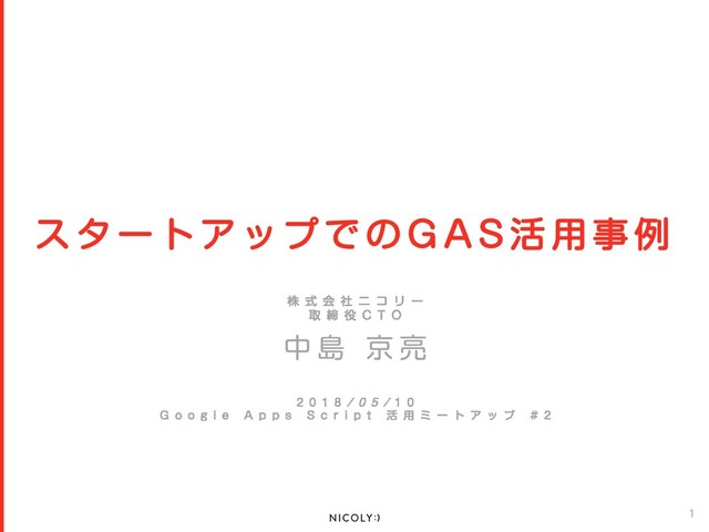 • スタートアップ – ⽇々の運⽤の⾼速/効率化はしたいけど、お⾦も時間もない – だからこそGASは社内運⽤でとても⼤事 • 事例 – ⽇報管理