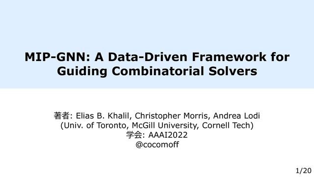 MIP-GNN: A Data-Driven Framework for Guiding Combinatorial Solvers 著者: Elias